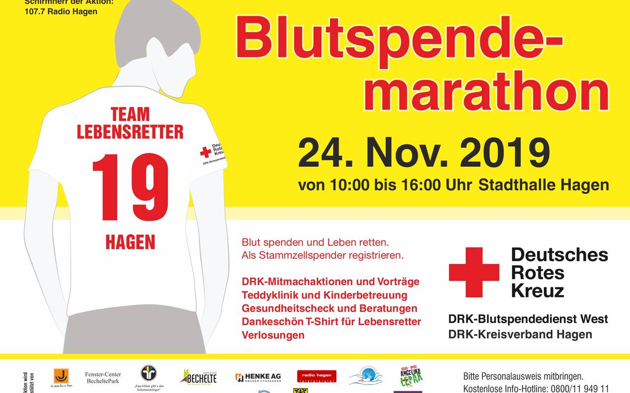 Der Hagener Blutspendemarathon hat mittlerweile seinen festen Platz im Veranstaltungskalender gefunden. „Unser Ziel ist es auch in diesem Jahr wieder den Tagesbedarf von 800 Blutspenden zu erreichen.“ erhofft sich die Organisatorin Sabine Gräfe-Schmidt, Referentin beim Zentrum für Transfusionsmedizin in Hagen. Ganz neu sind die „Dankeschön T-Shirts“ für alle Lebensretter. Viele ortsansässige Unternehmen unterstützen das Projekt seit Jahren und ermöglichen dieses Mal die Ausgabe der T-Shirts mit persönlicher Beflockung an jeden Blutspender. Die Schirmherrschaft übernimmt traditionell Radio Hagen.