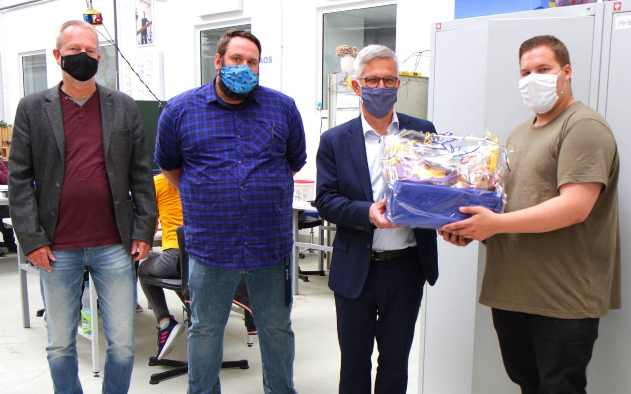 1400 Masken wurden bereits an verschiedene Hagener Einrichtungen verteilt. Die Mitarbeiter haben wortwörtlich noch Stoff für 12.000 weitere Masken. Bei einem Besuch in der Homborner Werkstatt lobte Oberbürgermeister Erik Schulz die Arbeit der jungen Erwachsenen: Mit ihrem Einsatz haben sie der ganzen Stadt geholfen, so Schulz.