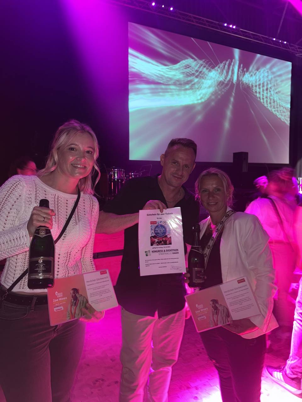 Im Laufe des Abends hatten unsere Gäste und Gästinnen die Chance nicht nur zu tanzen, zu trinken, essen, Dart spielen oder Fotos zu machen - sondern auch coole Gewinne mit nach Hause zunehmen! In der Geldregen-Kabine, mussten die Leute, Radio-Hagen Geldscheine sammeln. Und die Person, die am meisten gesammelt hat, hat am Ende einen Preis mitnehmen dürfen. An die Gewinnerplätze gingen Exklusiv-Konzertkarten für Zoe Wees oder Karten für das Radio Hagen Oktoberfest.