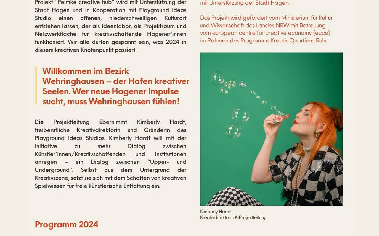 Neben geplanten Veranstaltungen geht es auch um einen passenden Namen für das Kreativzentrum und die entsprechende Gestaltung von außen. Eingeweiht werden soll das Ganze dann am letzten Aprilwochenende mit viel Programm, sagt Kim Hardt. Sie ist von der Pelmke mit dem Projekt betraut worden.