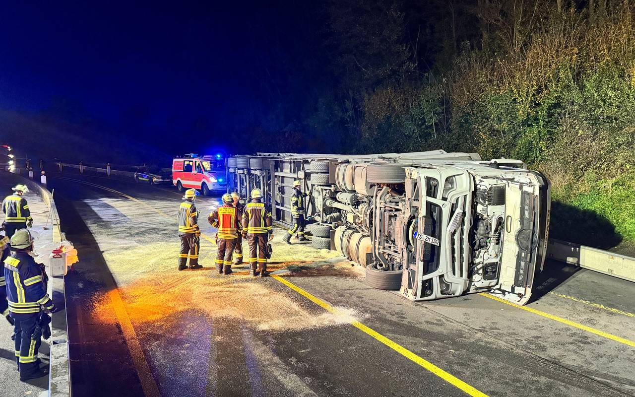 Die A45 war am Morgen zwischen Hagen-Süd und Lüdenscheid-Nord in beide Richtungen voll gesperrt. Dort ist ein Lkw in einer Baustelle umgekippt. Er blockierte beide Fahrbahnen. Es lief Diesel aus. Seit 16 Uhr ist die Autobahn aber wieder frei.