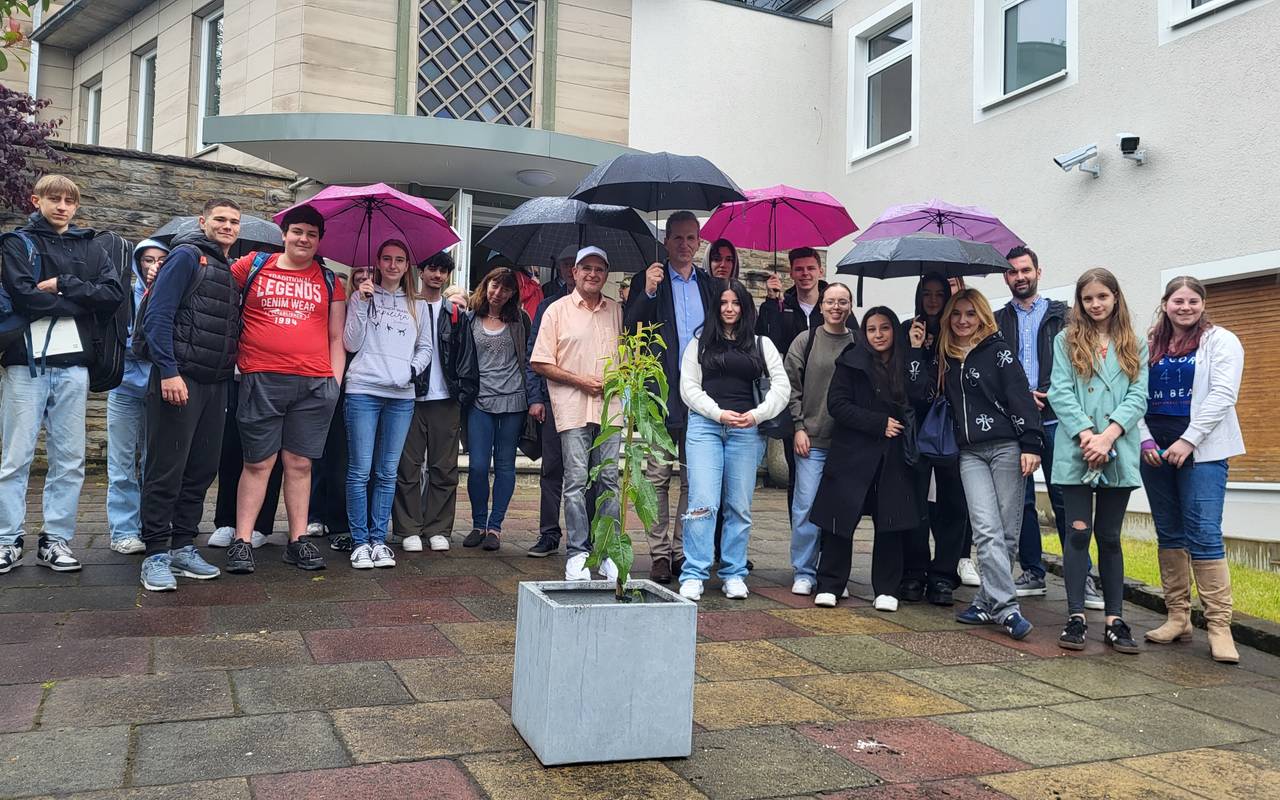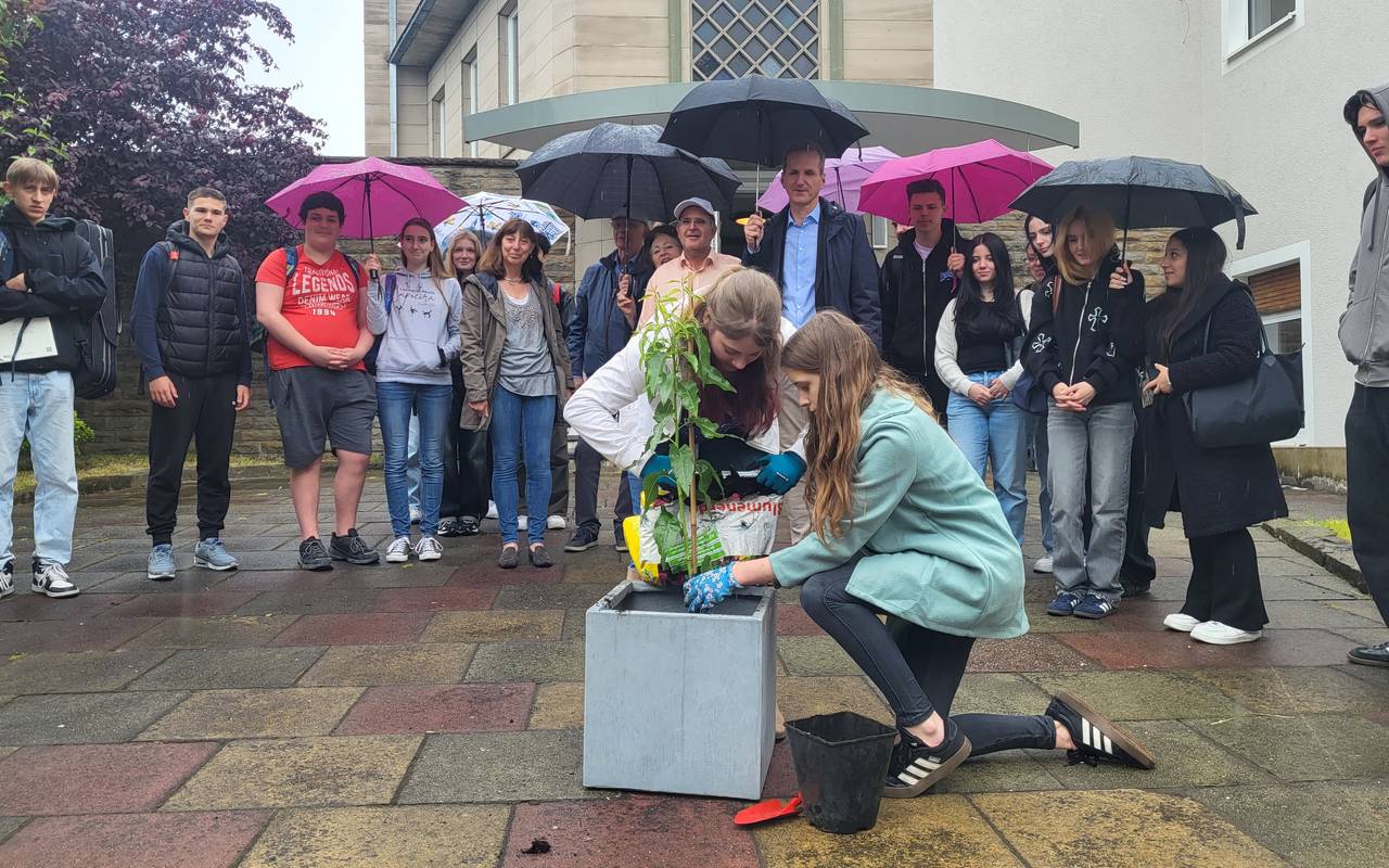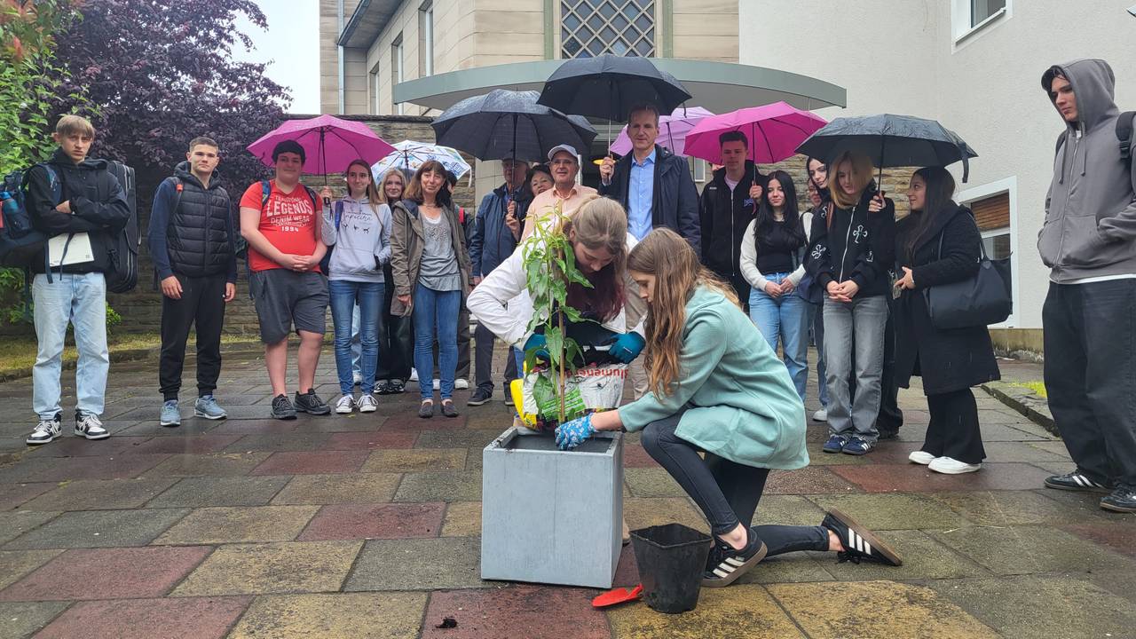 Am Montag (10. Juni) haben Schülerinnen und Schüler des Albrecht-Dürer-Gymnasiums einen Mandelbaum bei der jüdischen Gemeinde in der Potthoffstraße gepflanzt.