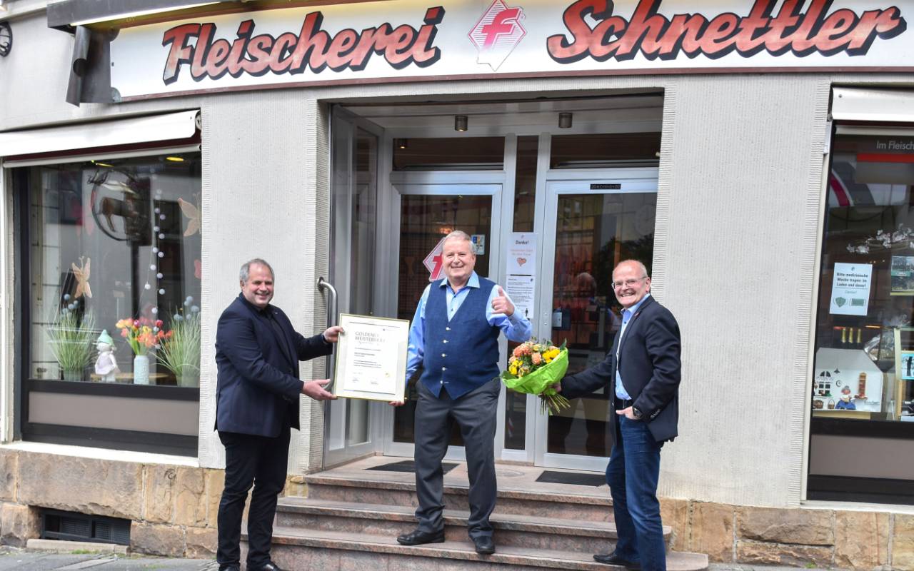 1878 hat der Metzger Fritz Schnettler die Metzgerei in Boele gegründet. Sein Urenkel Friedhelm Schnettler bekam jetzt von der Fleischer-Innung Westfalen Mitte den goldenen Meisterbrief für 50 Jahre als Meister in dem Familienbetrieb.