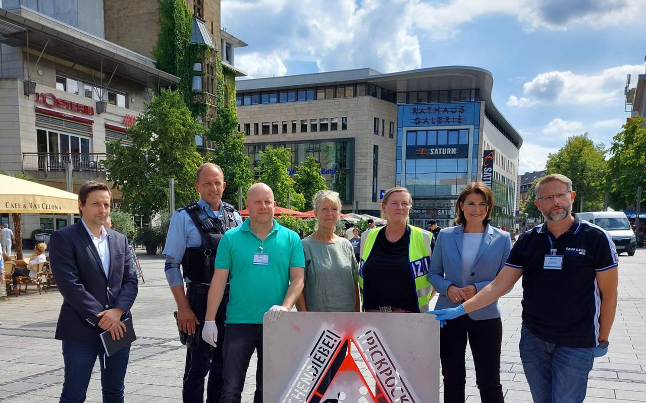 Aus diesem Grund möchte die Hagener Polizei sich jetzt für mehr Aufmerksamkeit einsetzen. Auf dem Friedrich-Ebert Platz zum Beispiel. Mit einer großen, leuchtenden Warnung auf dem Boden und mit Möglichkeiten zur Beratung. Neben Kräften der Polizei und Beamten der Kriminalprävention, stand auch die Polizeipräsidentin Ursula Tomahogh zu Gesprächen bereit.