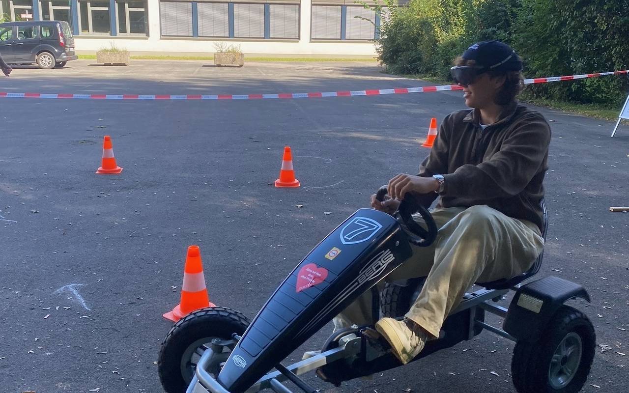 Das Highlight des Aktionstags waren allerdings die sogenannten ,,Rauschbrillen''. Mit den Brillen, die verschiedene Alkoholpegel simulieren, konnten die Schülerinnen und Schüler sich dann noch selbst in einem Go-Kart - Parkour versuchen. Dabei konnten sie hautnah erleben, wieso Alkohol am Steuer so gefährlich ist.