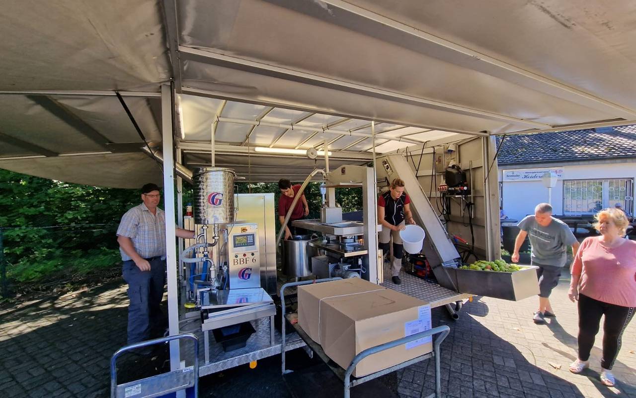 In Hohenlimburg wird noch bis heute Abend aus Äpfeln Apfelsaft gemacht.