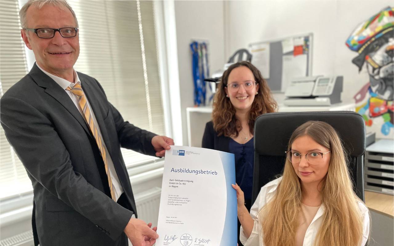 Die Südwestfälische Industrie und Handelskammer hat in Hagen fünf Betriebe ausgezeichnet. Ihre Leistung: Sie bilden erstmals aus. Einer der Betriebe ist die Gebäudereinigung "Dalli" aus Oberhagen.
