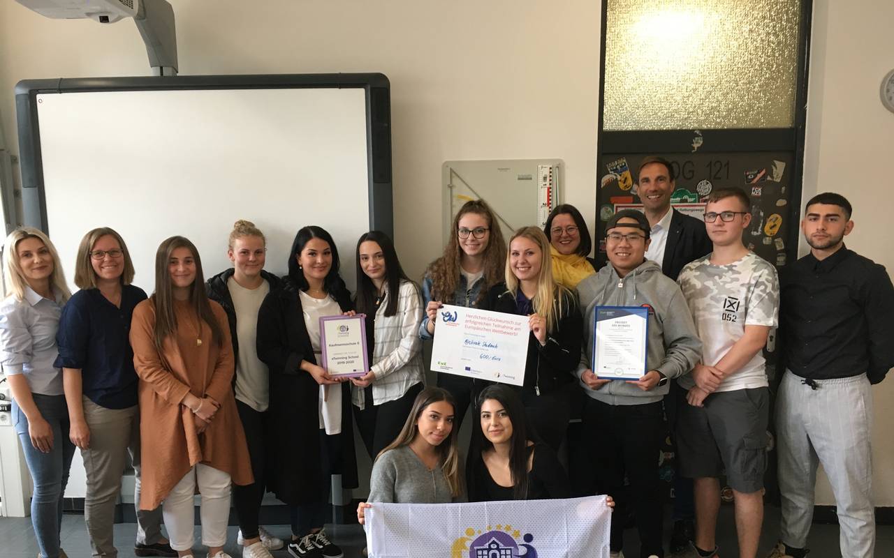 Als eine von vier Schulen deutschlandweit darf sich die Hagener Kaufmannschule II über den Gewinn im Wettbewerb um den eTwinning-Preis freuen. eTwinning ist eine Gemeinschaft für Schulen in Europa. Sie bietet jedem, der in einer Schule in einem europäischen Land arbeitet, eine Plattform, um zu kommunizieren, zu kooperieren und Projekte zu entwickeln. Die Kaufmannschule hat Projekte unter anderem zu den Themen Soziale Netzwerke, Demokratisierung und Europawahl gemeinsam mit Schulen aus Polen, der Türkei und Griechenland dafür entwickelt. Dafür wurden sie jetzt ausgezeichnet. Auf ihren Verdienst sind die Schülerinnen und Schüler besonders stolz.