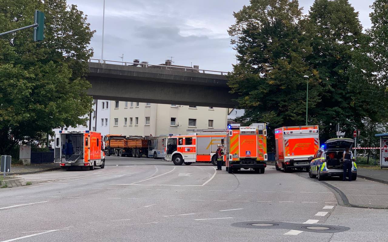 Die Delsterner Straße ist aktuell komplett gesperrt., das gilt auch für den Busverkehr. Die Polizei bittet darum, die Stelle weiträumig zu umfahren. Die Gasleitung muss nun leerlaufen, das kann noch zwei bis drei Stunden dauern. Explosionsgefahr besteht nach aktuellen Erkenntnissen nicht.