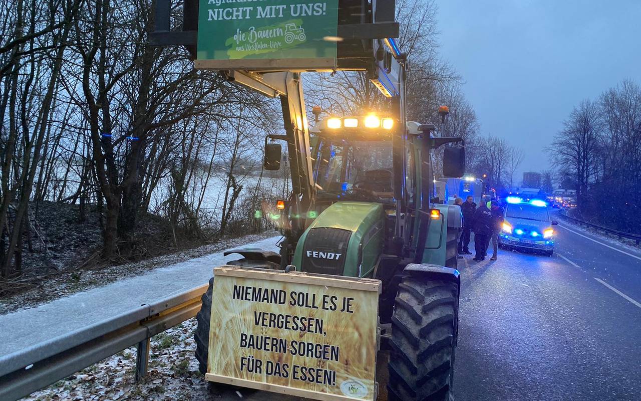 Am Vormittag waren auch in Hagen die Trecker unterwegs. Von Haßley aus machten sich insgesamt knapp 100 Fahrzeuge auf den Weg. Über den Vorhaller Kreisel ging es zurück in die Stadt. Unter anderem, um vor dem SPD-Parteibüro mit dem Bundestagsabgeordneten Timo Schisanowski zu sprechen.