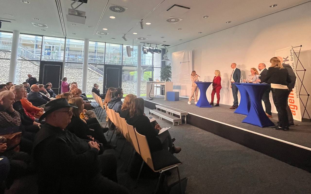 Ausgetragen in der FernUni konnten Arbeitssuchende mit verschiedenen Unternehmen in Kontakt treten und sich informieren. Der Konferenzsaal: Überfüllt. Das Interesse an beruflicher Entwicklung also ziemlich groß. Qualifikationsanforderungen und Fördermöglichkeiten sollen klar vermittelt werden, so das Ziel der Veranstaltung. Um das zu erreichen, müssen sich natürlich auch die Arbeitgeber an den Veränderungen im Arbeitsmark anpassen. Auch darüber hat sich die Agentur Mark gedanken gemacht, sagt die Fachbereichleiterin der Agentur Mark Johanna Muhl.