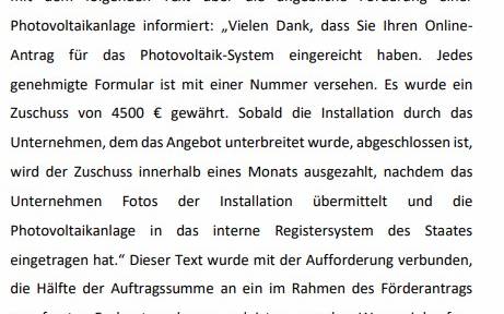 Betrugsmasche Solarförderung