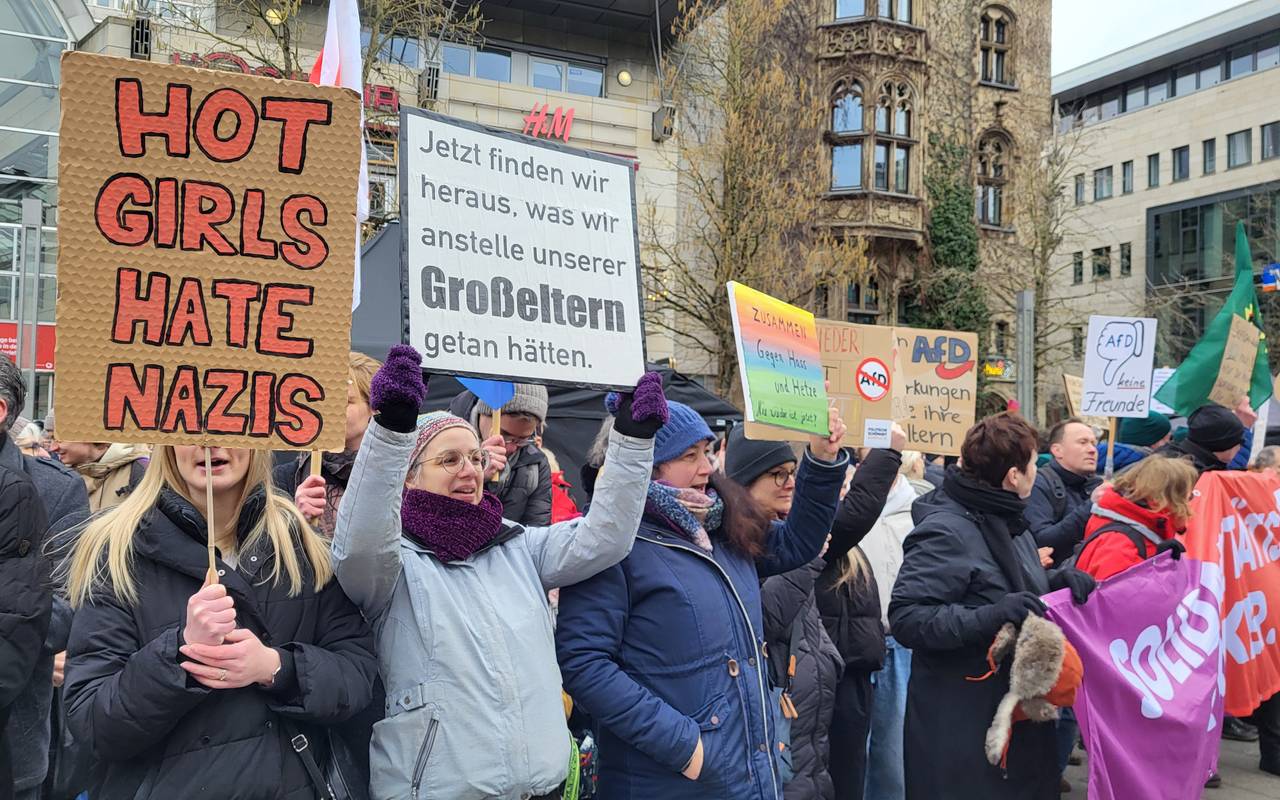 Samstag (15. Februar) wurde symbolisch die gefallene Brandmauer auf dem Friedrich-Ebert-Patz wieder aufgebaut. Es wurde für Demokratie und Menschenrechte und gegen Rechtsextremismus demonstriert.