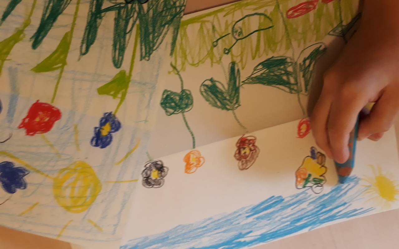 Und so geht's: Legt ein DINA4 Blatt quer vor Euch hin und faltet es, indem ihr die langen Kanten aufeinanderlegt. Faltet es wieder auf und dann habt ihr oben den Horizont für die Blumenwiese und unten malt ihr das saftige Grün. Nun lasst eurer Fantasie freien Lauf, malt eine wilde Wiese mit Tierchen, Blumen und was ihr sonst auf einer Blumenwiese findet.
