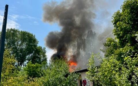 Um 12.22 Uhr war am Sonntag der erste Alarm bei der Feuerwehr eingegangen. Zuerst hatte man angenommen, eine Holzhütte auf dem Gelände würde brennen. Später stellte sich allerdings heraus, dass das Vereinsheim brannte. Das erklärt auch die starke Qualm- und Rußentwicklung - sie entstand unter anderem durch brennende Dachpappe. Wegen der massiven Rauchentwicklung hatte die Feuerwehr Anwohner gebeten, Türen und Fenster zu schließen.