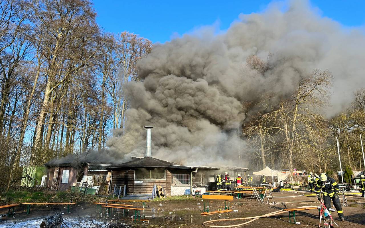 Die Feuerwehr wurde gegen 8.10 Uhr zum Loheplatz gerufen. Dichter Qualm quoll aus dem Vereinsheim. Zahlreiche Feuerwehrleute waren stundenlang mit den Löscharbeiten beschäftigt. Ob es einen Zusammenhang zwischen dem Osterfeuer und dem Brand gibt, ist aktuell noch unklar. Die Polizei hat die Ermittlungen zur Brandursache aufgenommen.