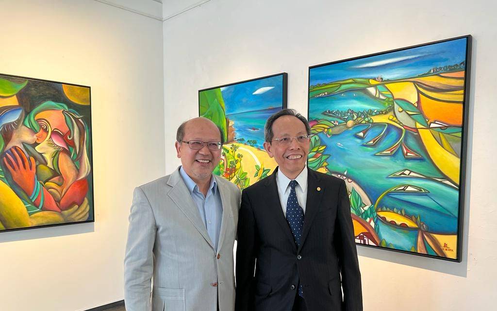 Der Generalkonsul von Taiwan ist extra für eine Ausstellungseröffnung nach Hagen gekommen. Der Hagenring zeigt im Moment Bilder von Bruce Lin, einem Künstler aus Taiwan, der seit über 30 Jahren in Rotterdam lebt. Seine Bilder zeigen eine eigene Welt des Friedens und sind ein starker Kontrast zur gegenwärtigen Realität.