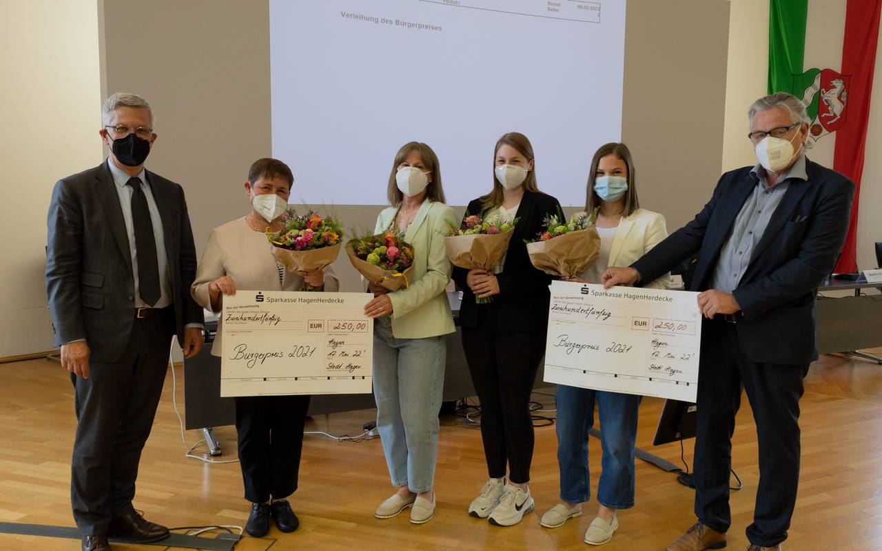 Barbara Proschka hat den ersten Bürgerpreis der Stadt Hagen gewonnen. Am Rande der Ratssitzung überreichten Oberbürgreister Erik Schulz und Josef Bücker als Vorsitzender des Ausschusses für Bürgeranregungen die Auszeichnung.