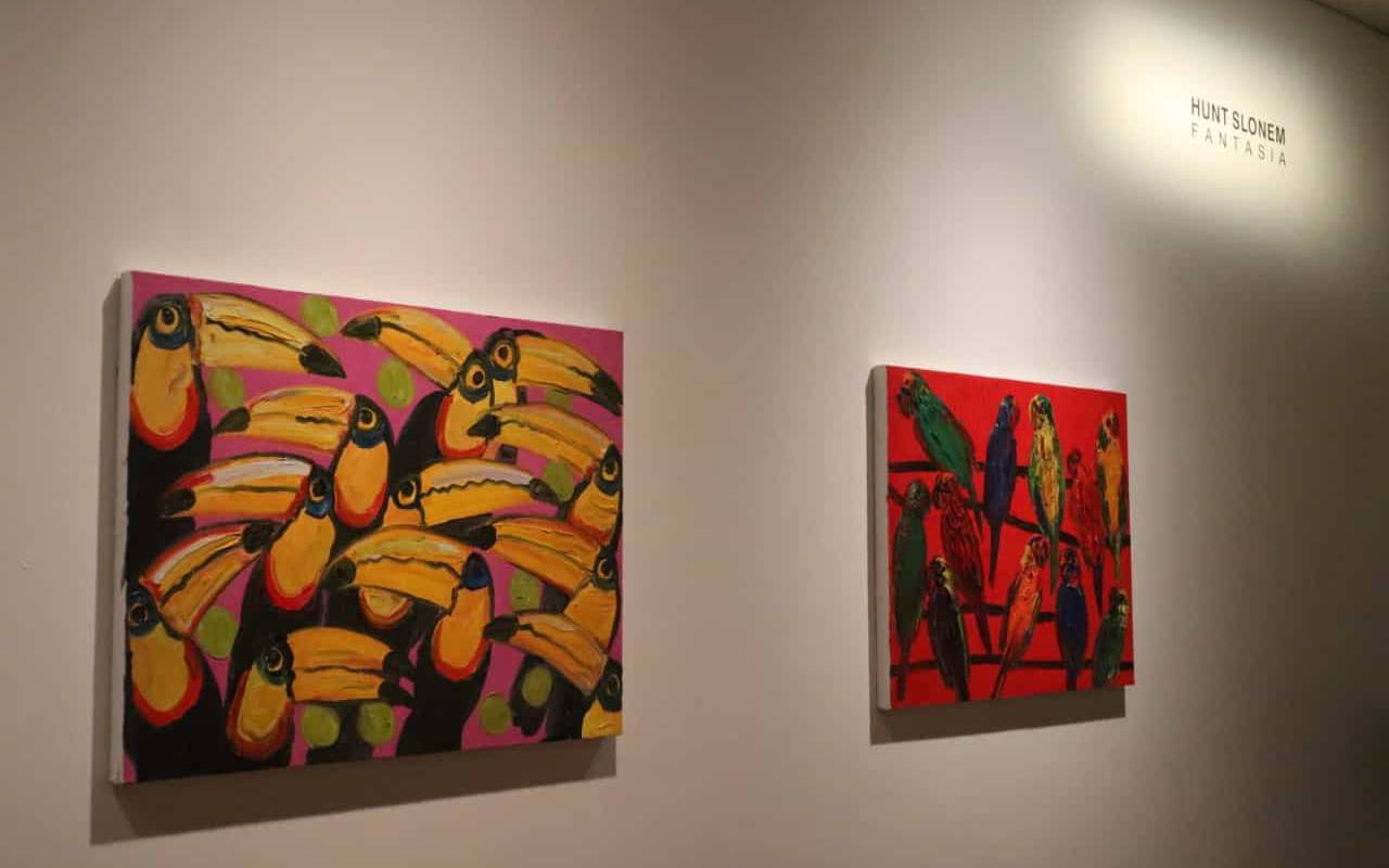 Die Ausstellung heißt Fantasia. Erstellt wurde sie von dem amerikanischen Maler, Bildhauer und Grafiker Hunt Slonem. Zu sehen gibt es Malereien von Tieren und Menschen. Das besondere an ihnen ist die Vielfalt an Farben und Formen. Außerdem wird ein Video über Hunt Slonem und seine Galerie in Amerika gezeigt.