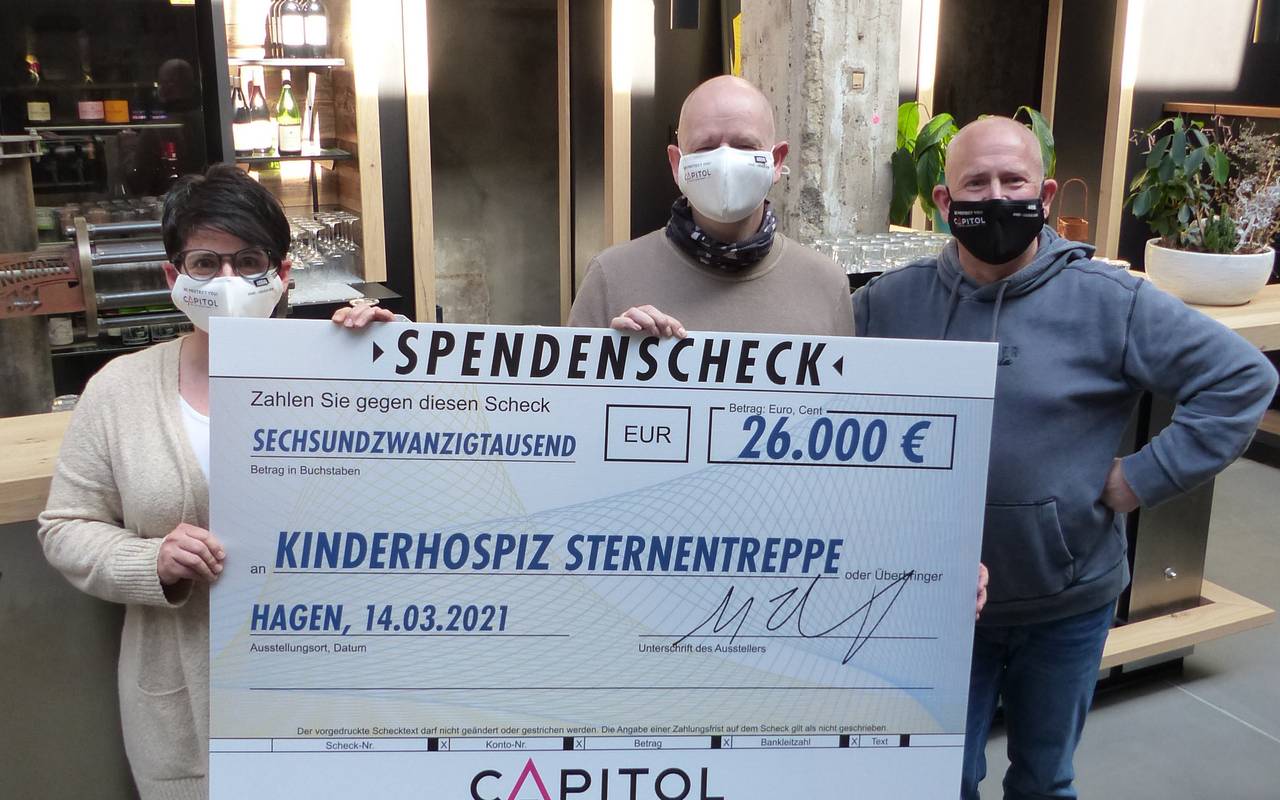 Mitte März sind bei einem 48 Stunden Charity Stream 26.000 Euro zusammengekommen. Die Organisatoren vom Capitol Hagen haben die Summe jetzt an den Kinder- und Jugendhospizdienst Sterntreppe der Caritas übergeben.