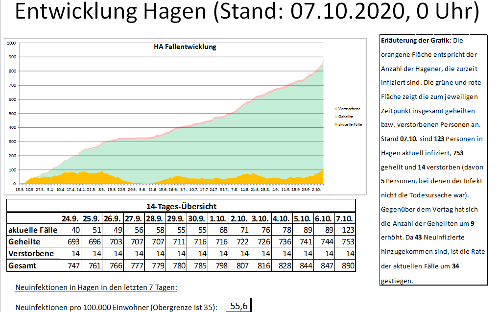 Die Alarmmarke liegt bei 50 Neuinfektionen auf 100 000 Einwohner innerhalb von sieben Tagen - Hagen liegt nun bei 55,6.
