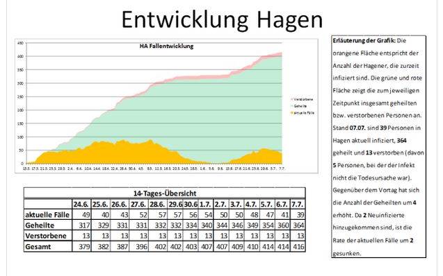 Die Zahl der aktuellen Coronafälle in Hagen ist weiter rückläufig. Im Moment haben wir 39 bestätigte Fälle von Infektionen in der Stadt.