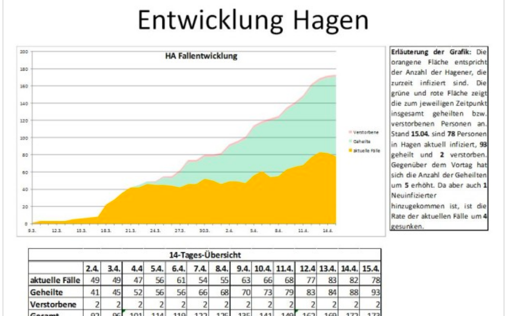 Die Zahl der Gesamtfälle steigt längst nicht mehr so schnell an. Offensichtlich haben die Coronaschutzmaßnahmen auch in bislang Hagen Erfolg.