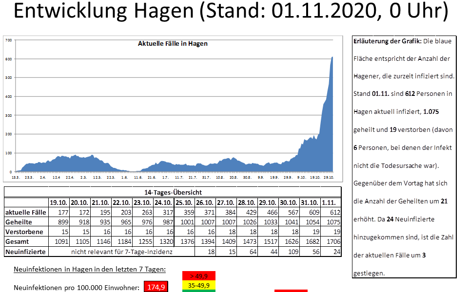 Vor dem anstehenden Teil-Lockdown sind die Coronazahlen in Hagen nochmal deutlich angestiegen.
