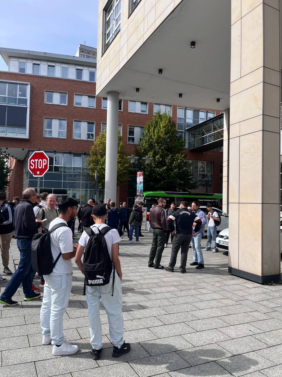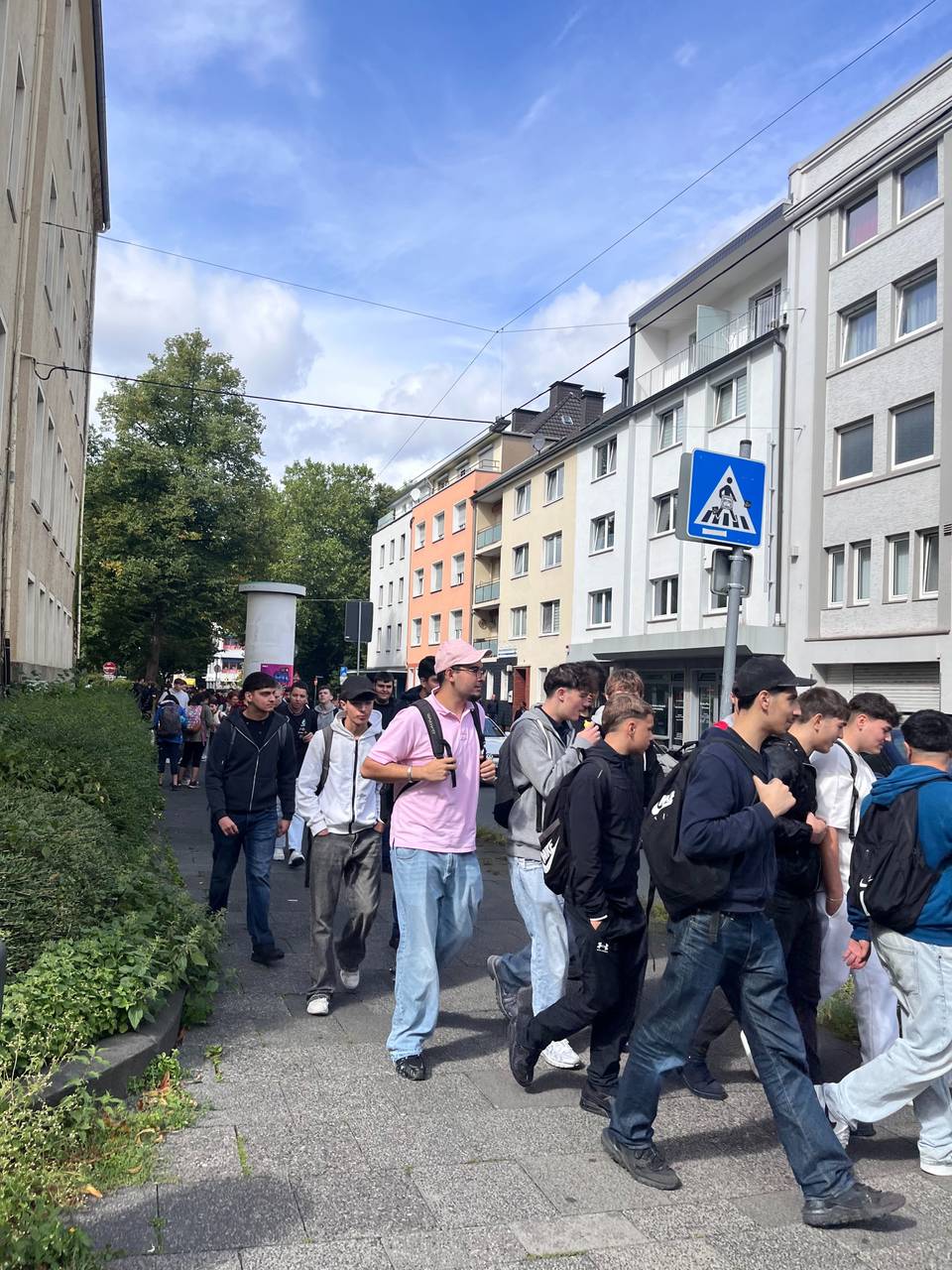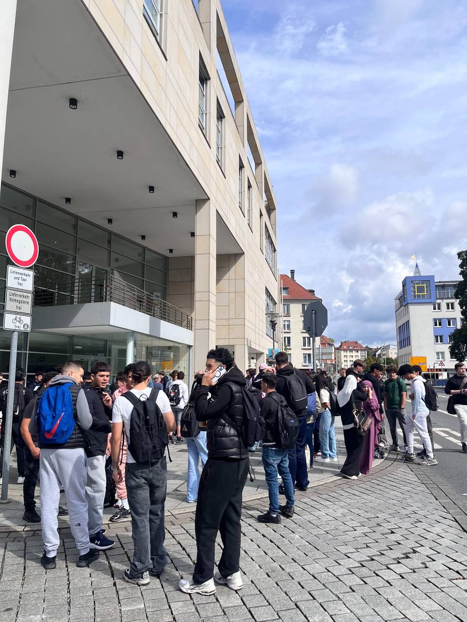 Das Cuno-Berufskolleg bleibt wegen massiver Brandschutzmängel geschlossen. Der Unterricht läuft nur eingeschränkt und ist größtenteils nur Online möglich. Heute (10.09.2025) hat sich die Schülervertretung mit dem Oberbürgermeister getroffen. Davor haben sich die Schülerinnen und Schüler vor dem Berufskolleg getroffen und sind zu Fuß zum Rathaus gegangen.