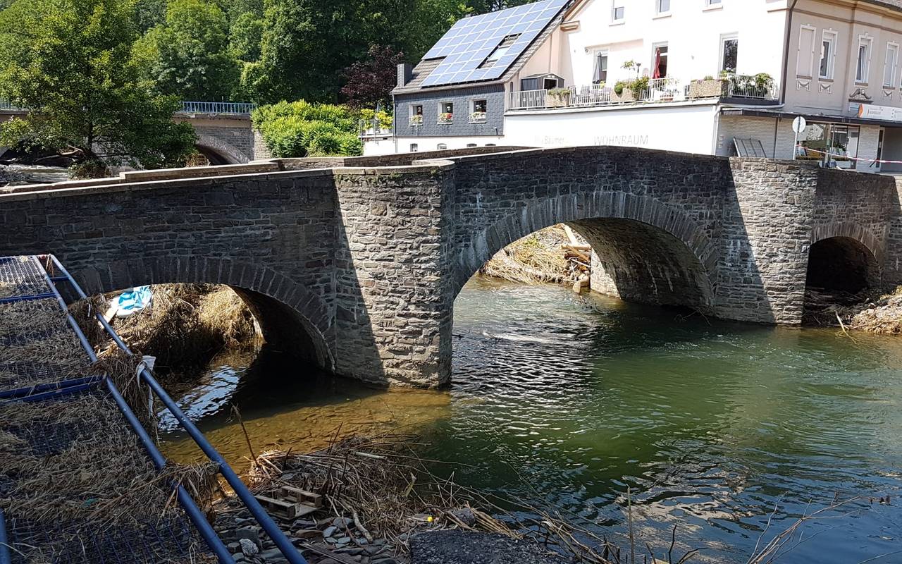 Kurz nach dem Hochwasser stellte der Wirtschaftsbetrieb fest: Einzelne Steine sind aus einem Pfeiler der historischen Brücke herausgebrochen. Das ist an sich reparabel und sagt noch nicht viel. Jetzt hat der WBH noch mal nachgesehen und sah, dass der Schaden sich vergrößert - und das sei ein Anzeichen dafür, dass der Pfeiler unterspült worden ist. Damit ist die Brücke nicht mehr standsicher.