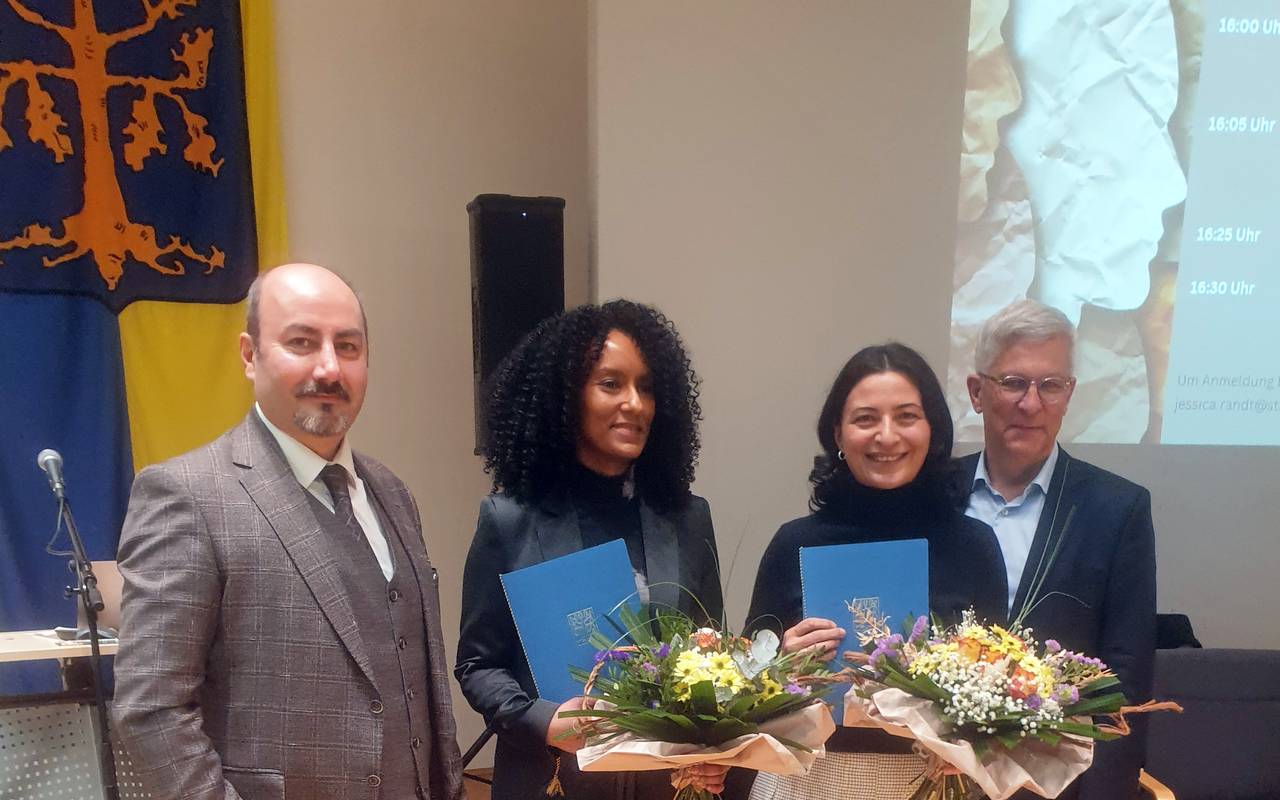Die beiden Preisträgerinnen haben im letzten Jahr über neun Monate einen Nähkurs mit Schneiderinnen aus Afrika, Südosteuropa, dem Nahen und den Mittleren Osten geleitet. Während des Kurses sind Modestücke entstanden, in denen sich die persönliche Biografie und Identität und das Zugehörigkeitsgefühl der Teilnehmerinnen wieder spiegeln. Der Preis wurde im Rahmen des Neujahrsempfangs des Integrationsrates überreicht.