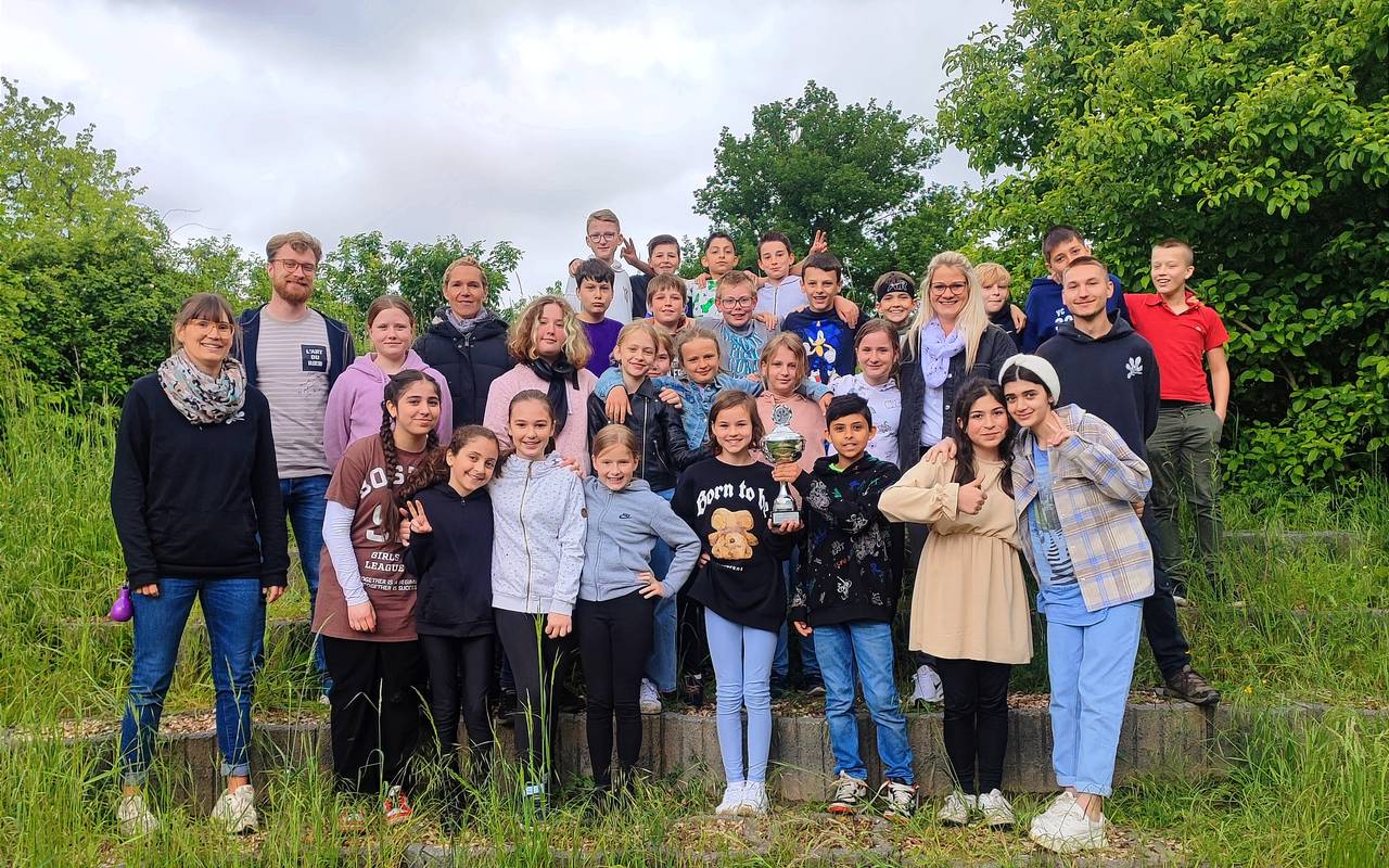 Die Schüler bekamen heute morgen den Veex-Wanderpokal, sowie 50€ Preisgeld für die Klassenkasse.