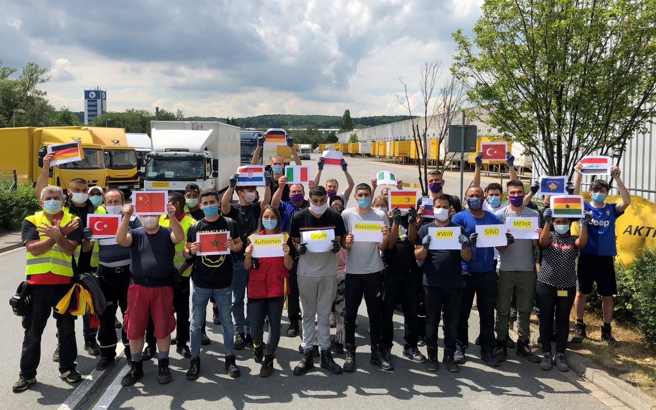 Eigentlich haben sie ja in Coronazeiten genug zu tun; das Paketaufkommen ist nach wie vor hoch, die Arbeit entsprechend viel. Aber sie trafen sich für ein Foto, um ihre Überzeugung zu demonstrieren. „Aufstehen gegen Rassismus“ betiteln sie ihr Bild. Die Beschäftigten in der Buschmühlenstraße kommen zum Beispiel aus Syrien, Nigeria, Marokko, Italien oder Spanien.