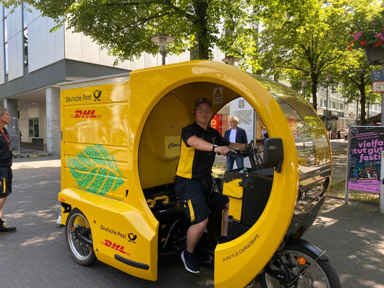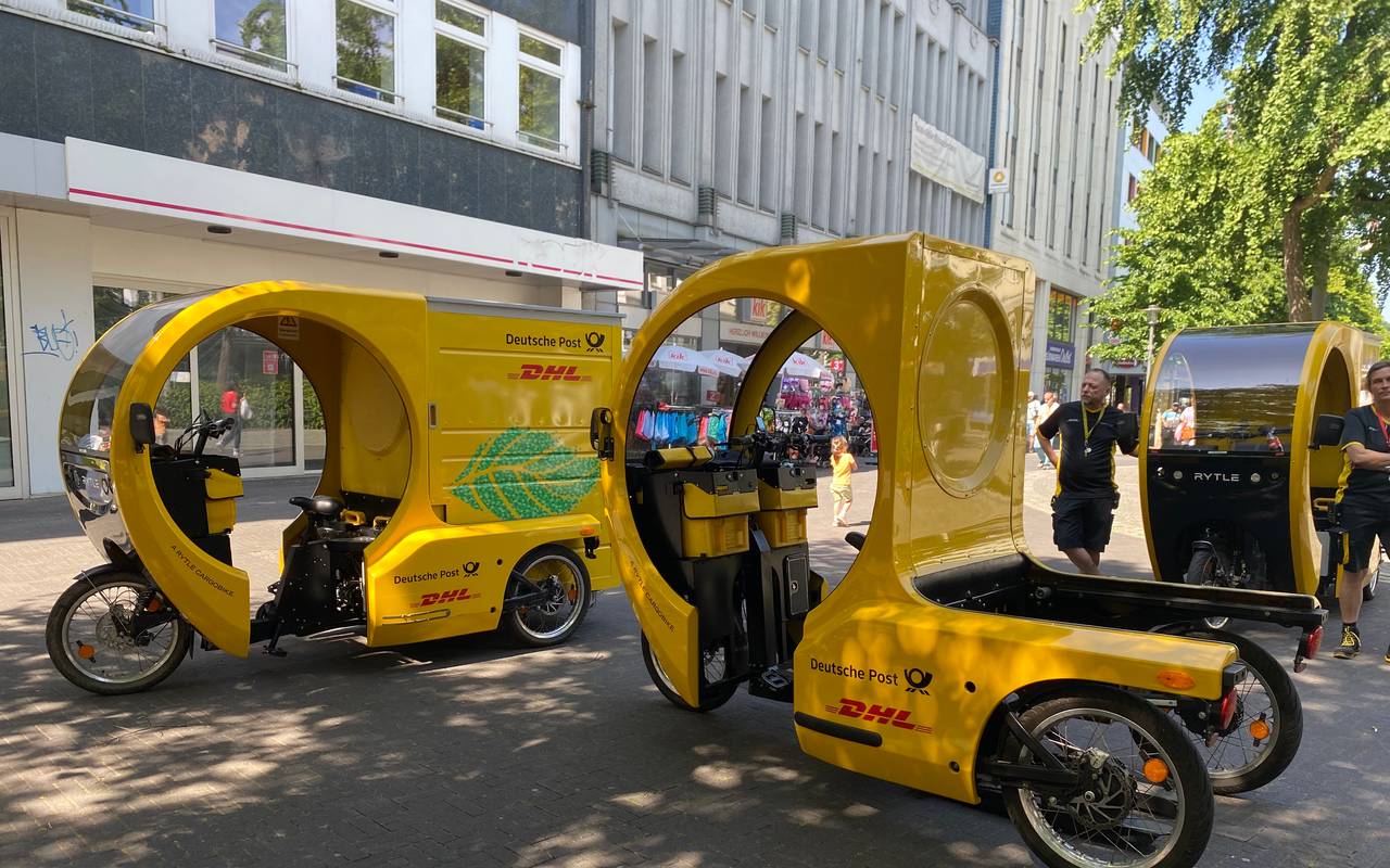 Da die Fußgängerzone für Lieferfahrzeuge nur noch bis 10:30 zugänglich ist, überlegte sich DHL eine Alternative um Kunden trotzdem über den ganzen Tag effizient beliefern zu können. Aus dieser Idee entstanden also drei E-Lastenräder der Firma Rytle. Hermann Wildenhues, Niederlassungsleiter der Region Essen und Hagen, findet es gibt viele Vorteile durch den Einsatz der neuen Bikes: