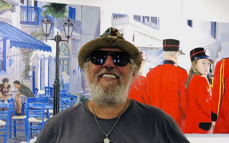 Mittlerweile ist er unter die Maler gegangen. Acryl auf Leinwand - geprägt von seiner zweiten Heimat, der griechischen Insel Mykonos. Ab 12 Uhr am Sonntag läuft die Vernissage auf dem Elbersgelände. Sicher auch Gelegenheit, über seine Erlebnisse in der Musikbranche zu plaudern. Beispielsweise den Triumph beim Grand Prix.