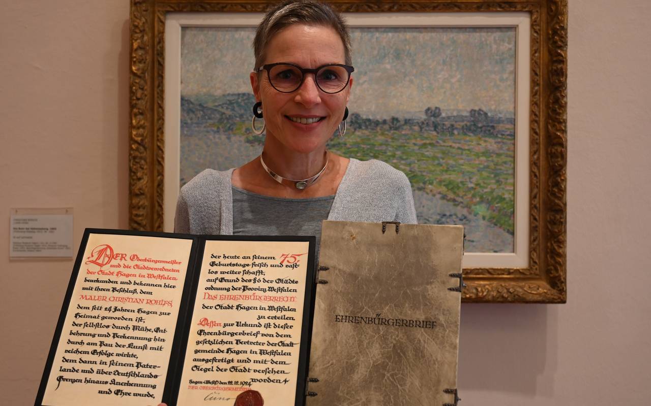 Der wurde später von den Nazis mit einem Malverbot belegt. Stichwort "Entartete Kunst". Die Ehrenbürgerurkunde von 1924 kommt passend zu einer Rohlfs-Ausstellung nach Hagen. Eine Hommage an den Künstler startet am 17. Oktober und zeigt Graphiken von Christian Rohlfs. Übereignet wurde das Dokument von einem Nachfahren.