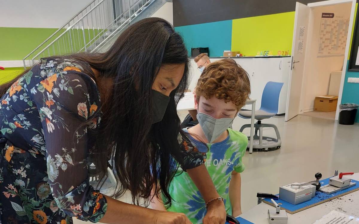 An verschiedenen Stationen sollten die Teilnehmer spielerisch für technische Berufe begeistert werden. Das Angebot ist eines der vielen Projekte im Rahmen der MINT-Förderung in NRW.