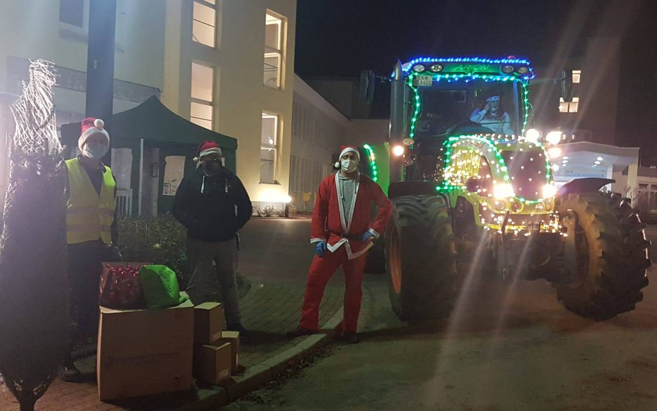 Ziel der Tour waren Kinderheime, Altenheime und Krankenhäuser. Bei uns in Hagen haben sie das Klinikum Ambrock angesteuert. Dort gab für das Krankenhaus Weihnachtsmusik und Geschenke.