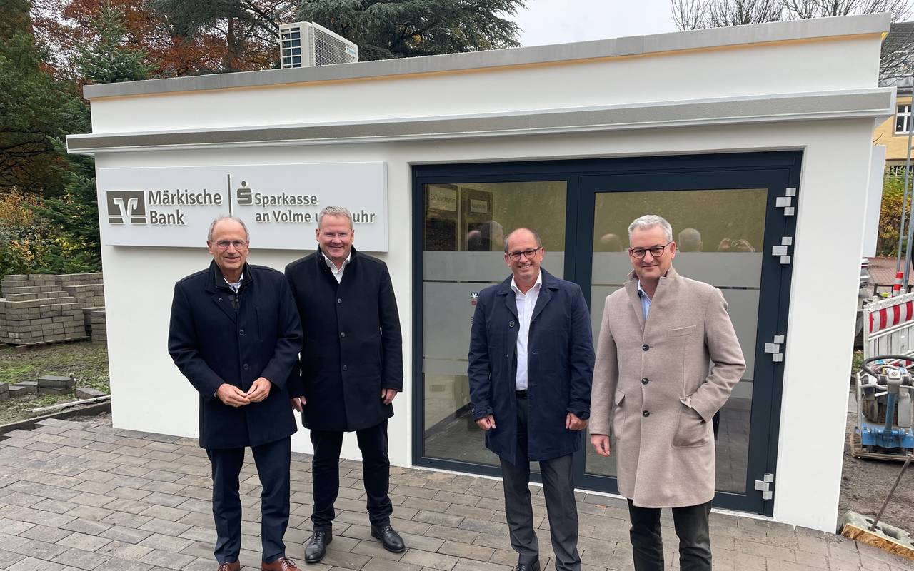 Die Sparkasse und die Märkische Bank machen ab sofort auch gemeinsame Sache. Dabei geht es um die sichere Bargeldversorgung der Kundinnen und Kunden. In Dahl wurde heute ein gemeinsamer SB-Pavillon in Betrieb genommen.