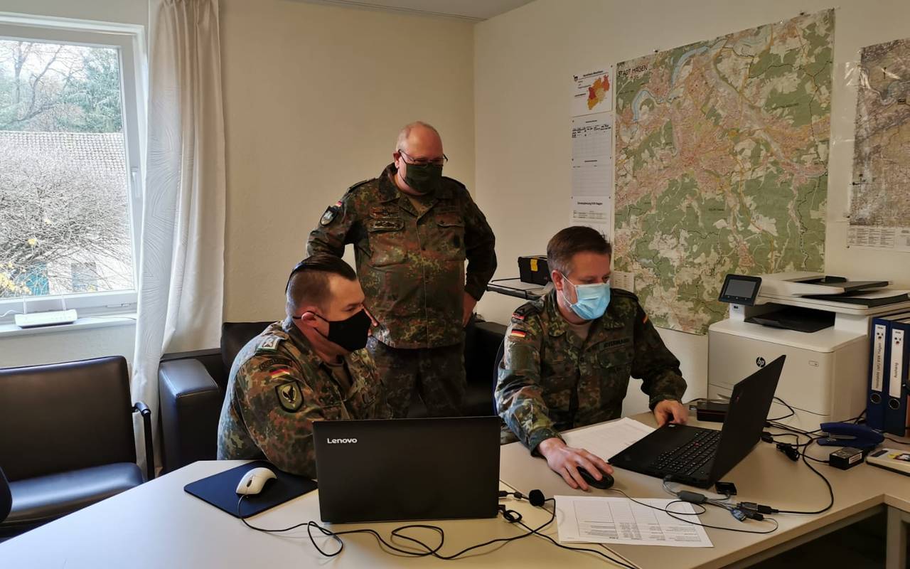 Die Bundeswehr ist auch bei uns in Hagen im Einsatz. 20 Soldaten helfen bei der Kontaktnachverfolgung von Corona-Infizierten. Sie sind im Haus Busch im Einsatz, wo sie auch schlafen und versorgt werden. Sogenannte Kreisverbindungskommandos sorgen dafür, dass die Zivil-Militärische-Zusammenarbeit funktioniert.