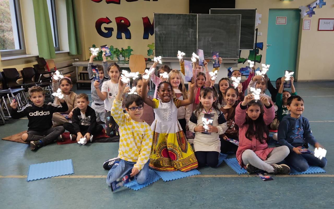 Unser kleiner Leuchtelch Emil besucht aktuell die ersten Klassen der Hagener Grundschulen. Heute war er an seinem siebten Tag an der Gebrüder-Grimm-Grundschule.