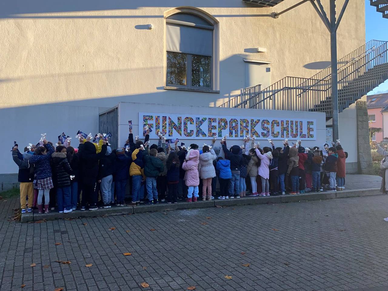 Unser kleiner Leuchtelch Emil besucht seit letzter Woche wieder die ersten Klassen der Grundschulen im Stadtgebiet. Heute war er an seinem fünften Tag an der Funckeparkschule.