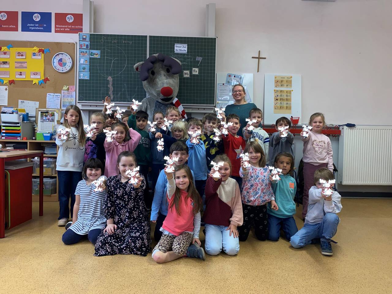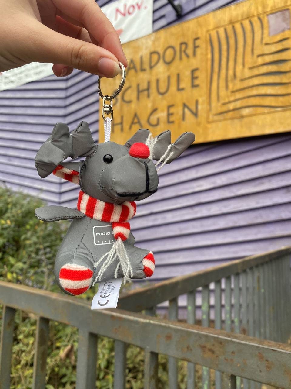 Jedes Jahr sind wir die zwei Wochen nach den Herbstferien mit der Emil Aktion an den Hagener Grundschulen unterwegs und verteilen den reflektierenden Anhänger an die Erstklässler. Leider kann Emil in den beiden Wochen nicht alle Grundschulen im Stadtgebiet besuchen. Dafür ist er aber jedes Jahr an unterschiedlichen Schulen. Für alle, die keinen Emil von uns bekommen, gibt es unseren Onlineshop. Da bekommt ihr Emil als Reflektorelch und auch als Stofftier.