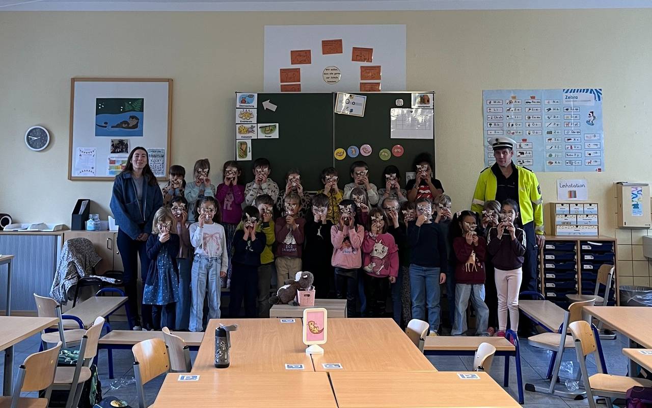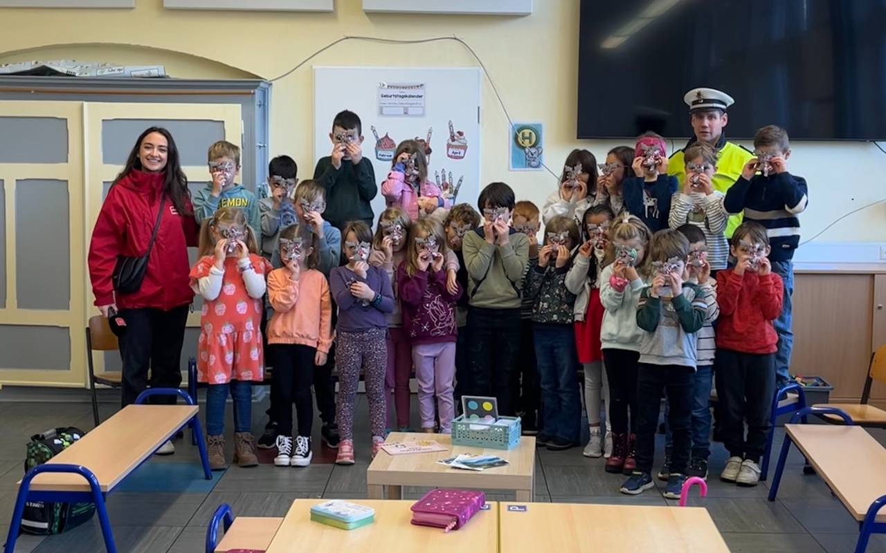 Gemeinsam mit der Polizei Hagen und unserer Emil-Beauftragten Lorita Halili ist Emil weiter unterwegs durch Hagens Grundschulen. Ziel: Mehr Sicherheit auf dem Schulweg - und das mit ganz viel Spaß. Die Begeisterung für den kleinen Emil ist riesig! Und natürlich ging's auch gleich los mit dem Üben: Das ganze Verkehrs-Einmaleins.