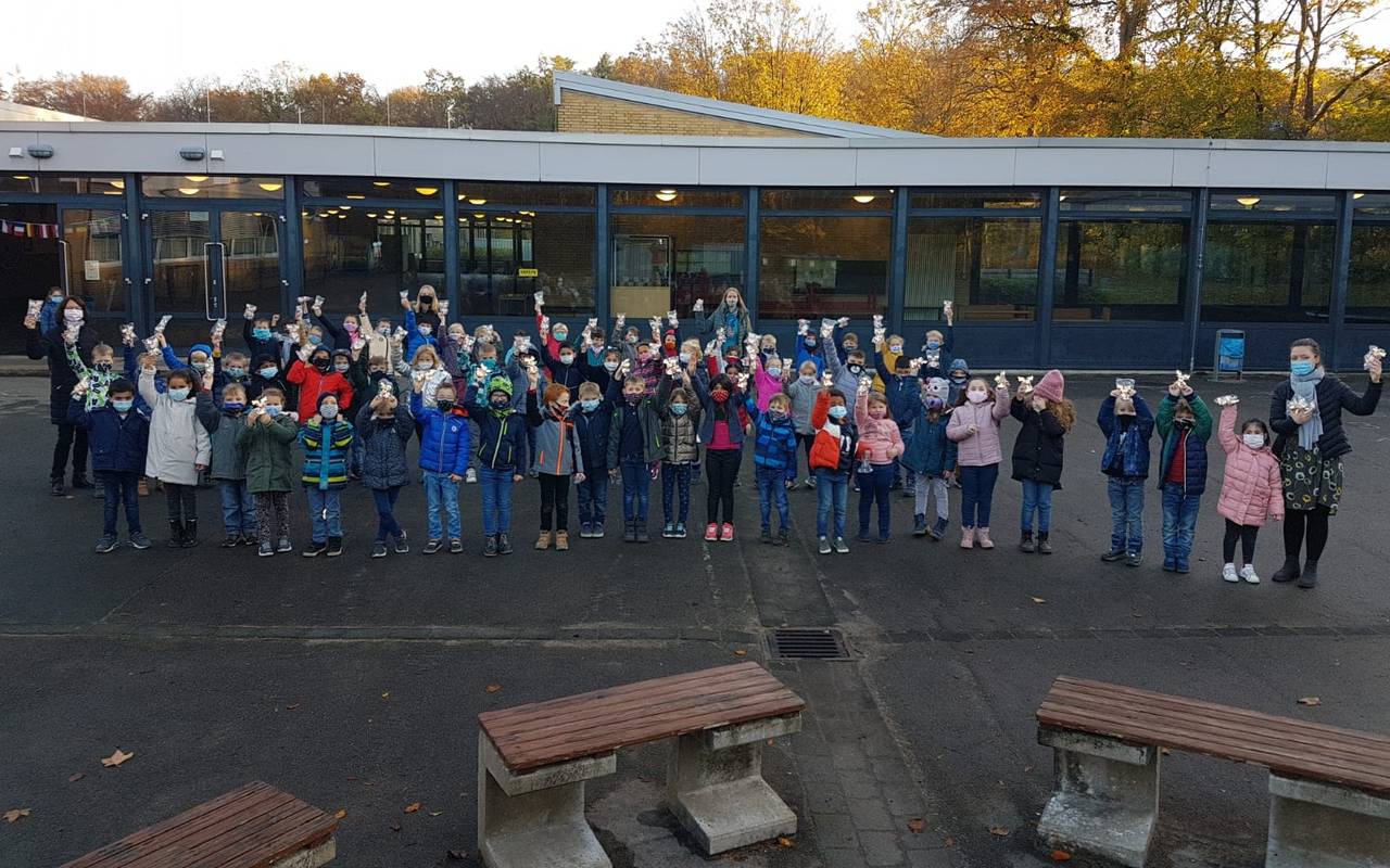 Die letzten drei Tage von Emils Reise durch die Hagener Schulen haben heute in der Heideschule in Hohenlimburg angefangen. Der Leucht-Elch dient als Reflektor, den die Kinder an ihren Tornister, ihre Jacken oder die Hose machen können, denn gerade in der dunklen Jahreszeit werden die Kinder nur schlecht von Autofahrern gesehen. Morgen geht es für den Leuchtelch an die Kipper-Grundschule.