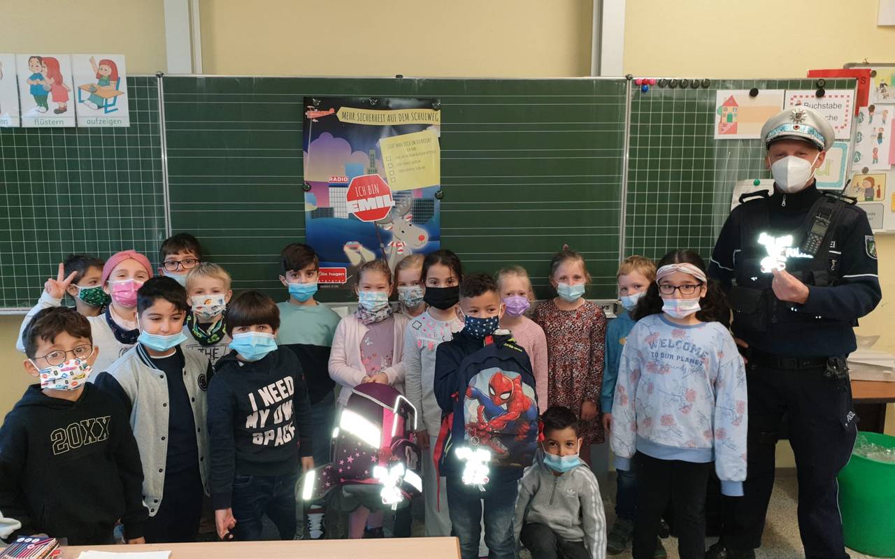 Emil ist wieder unterwegs. Zum Start seiner Reise war er am Montag in der Meinolfschule.