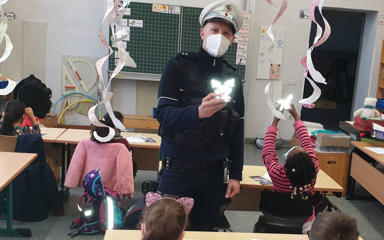 Mittlerweile war er schon an sieben Schulen, um für einen sicheren Schulweg zu sorgen. Durch seine Reflexion leuchtet der kleine Elch nämlich, sobald zum Beispiel Lichter von Autos auf ihn scheinen. So sollen keine Unfälle mehr auf dem Weg zur Schule passieren. Unser Emil alleine reicht aber natürlich nicht, die Kinder sollten trotzdem helle Kleidung tragen. Darauf achten Eltern immer noch viel zu wenig, sagt die Lehrerin Uta Jakob-Friedrich.