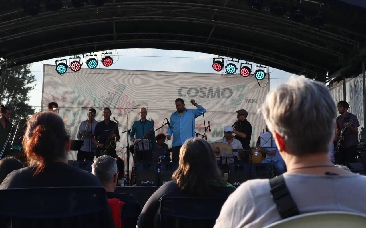 In ihrer Musik legt die 17-köpfige internationale Truppe Wert auf gute Laune und eine bessere Gesellschaft. Gegen Nazis, für Zusammenhalt und Hoffnung. Der Muschelsalat musste letzte Woche wegen des Hochwassers abgesagt werden. Dafür hat das Wetter und die Motivation dann gestern umso mehr mitgespielt. Das hat man auch den Zuschauern angemerkt.