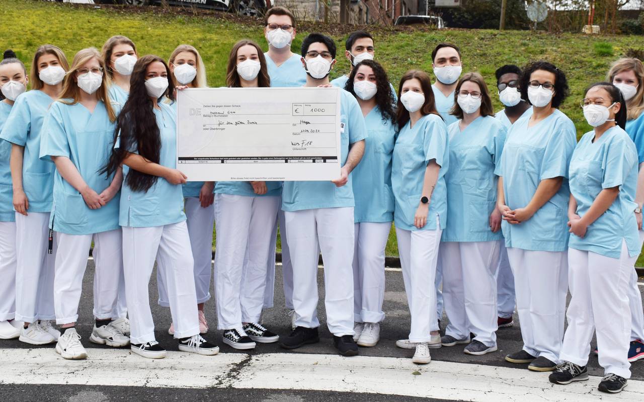 Nach drei Jahren Ausbildung hätte das frischgebackene Gesundheits- und Pflegepersonal gerne gefeiert – die aktuelle Pandemie-Lage macht den Plänen aber einen Strich durch die Rechnung. Stattdessen teilt der Kurs die insgesamt 1.000 Euro auf und spendet sie: Zum einen profitieren das stationäre Hospiz Hagen und das Kinderhospiz Sternentreppe von der Spende. Ein dritter Teil des Geldes geht an einen Verein, der sich um die Erforschung des Rett-Syndroms kümmert.