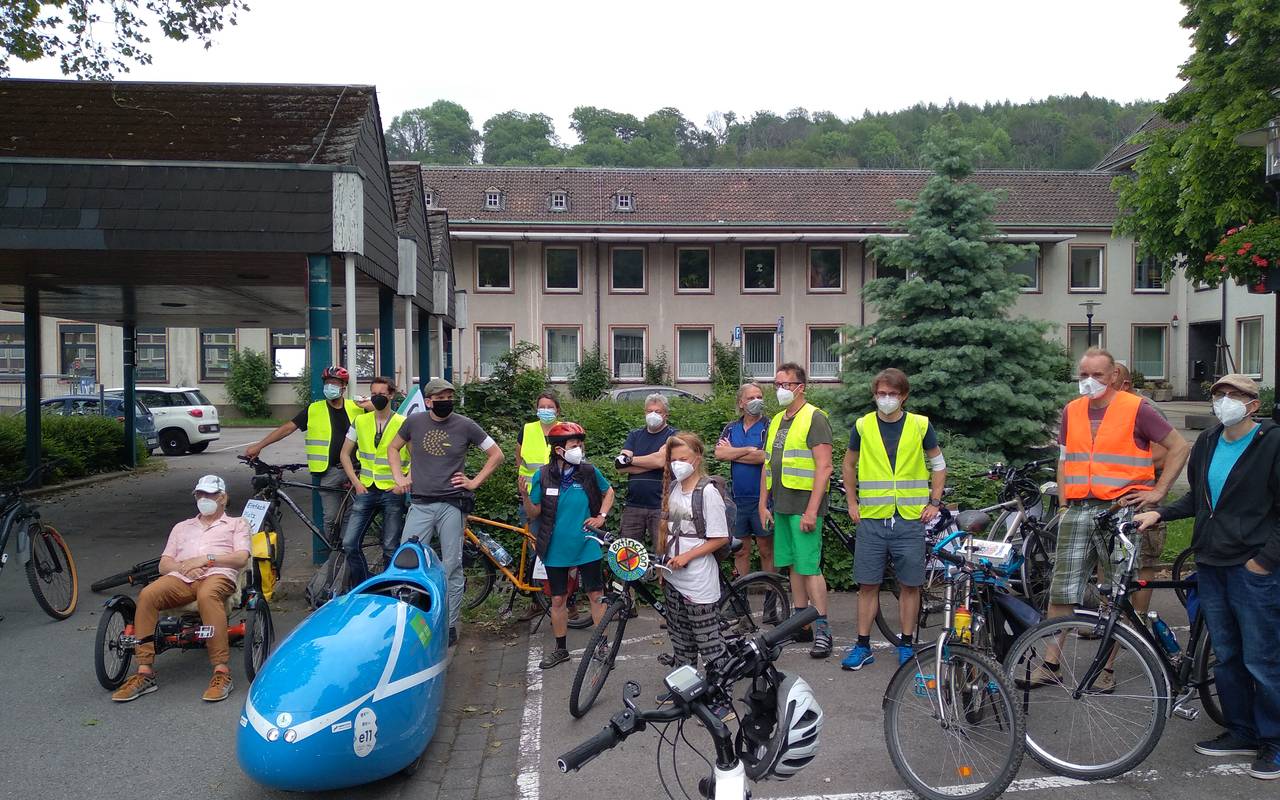 Veranstalter war eine Initiative zur Verkehrswende in dieser Stadt, das Hagener Forum für den Fuß- und Radverkehr. Los ging es um 14 Uhr in Hohenlimburg über das Hochschulviertel, Helfe, Boele und Vorhalle zur Innenstadt, insgesamt eine Strecke von ca. 20 Kilometern. Räder in allen Ausführungen waren am Start und alle Radler einte die Aufforderung an Politik und Verwaltung Hagen endlich fahrradtauglicher zu gestalten.